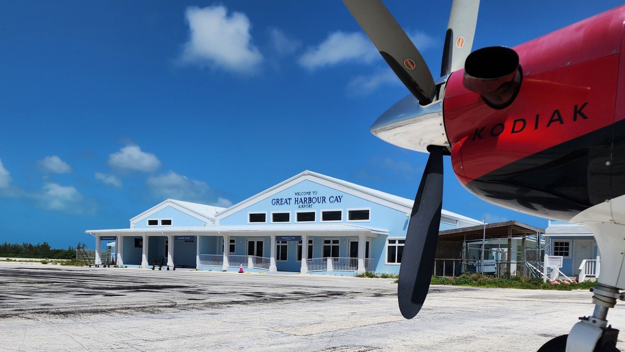 After a quick flight over the Gulfstream, we'll land and clear customs in Great Harbour Cay.